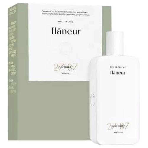 Flâneur от 27 87 — это аромат для мужчин и женщин, он принадлежит к группе шипровые. Аромат Flâneur выпущен в 2021 году. Парфюмер: Mark Buxton. Верхние ноты: Липовый цвет и Бергамот; средние ноты: Абсент, Миндаль и Корень ириса; базовые ноты: Ветивер, Кашемировое дерево и Серая амбра.