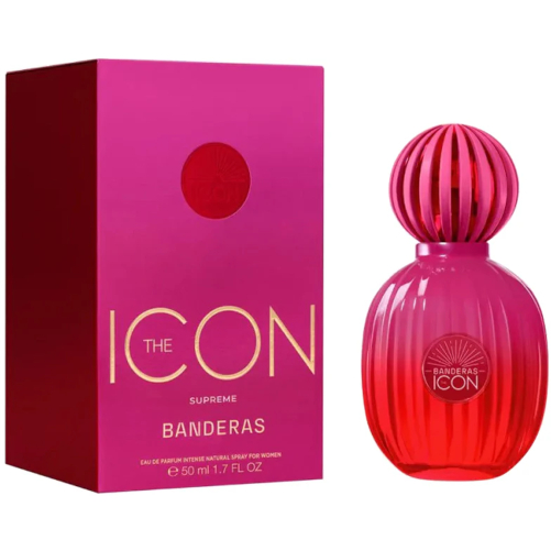 The Icon Supreme for Women от Antonio Banderas — это аромат для женщин, он принадлежит к группе восточные цветочные. Это новое издание: аромат The Icon Supreme for Women выпущен в 2025 году. Верхние ноты: Малина и Мандарин; средние ноты: Тубероза, Роза и Цветок апельсина; базовые ноты: Сандал, Пачули, Амбра и Гелиотроп.